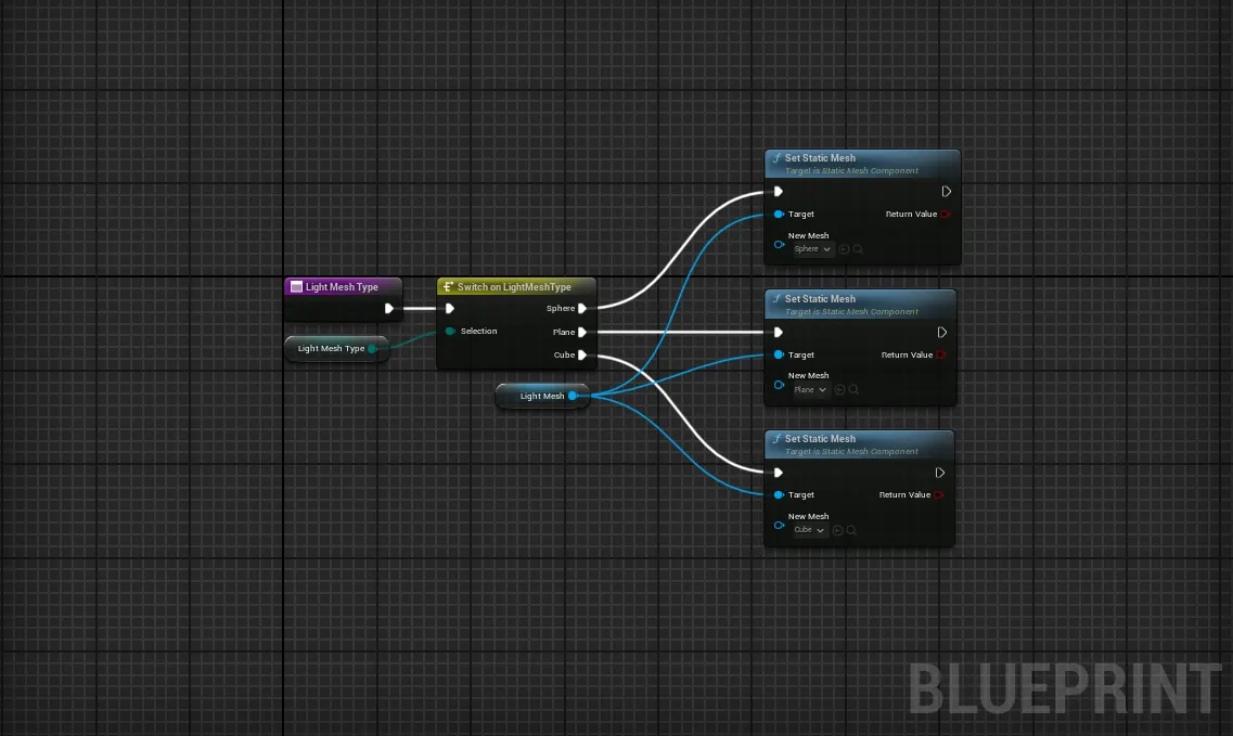 Light Mesh의 Object 타입을 Sphere, Plane, Cube, Cylinder로 선택 가능합니다.