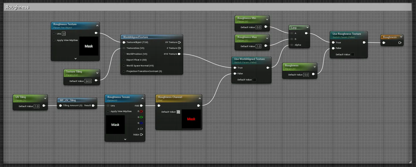 Roughness 텍스쳐를 WorldAlign 또는 UV로 선택하여 유리의 Grunge를 표현할 수 있습니다.